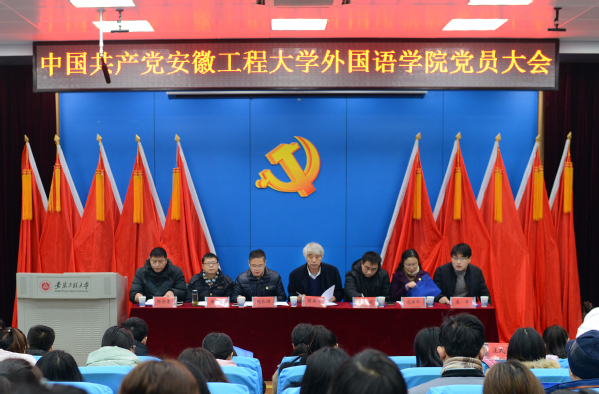 大会号召,我们要以习近平新时代中国特色社会主义思想为指导,在学校党委、行政的坚强领导下,全面贯彻落实党的十九大精神和学校党代会确定的目标任务,坚持求真务实,坚持改革创新,坚持真抓实干,团结带领全院共产党员和全体师生员工,同心同德,振奋精神,坚定信心,开拓创新,为顺利实现学院“十三五”发展目标,把我院建设成为特色鲜明、省内领先的外国语学院而努力奋斗。