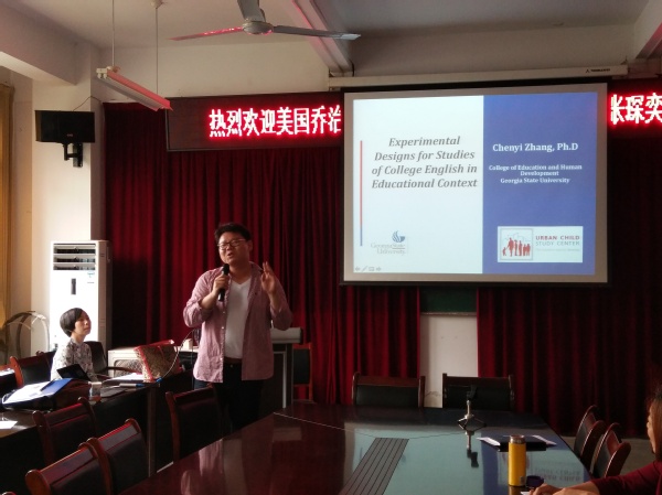 52日,知名校友美国乔治亚州立大学教育与人类发展学院终身副教授张琛奕博士应邀回母校,为外国语学院师生作了两场学术报告。