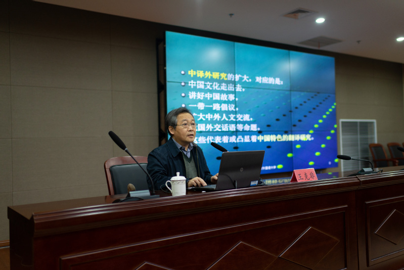 在“翻译研究拓展的取向”的报告中,王克非从翻译的概念出发,介绍了翻译研究的理论层面和应用层面所包含的主要内容,进而指出现阶段翻译研究的两大取向:凸显中国特色的中译外研究、与国际接轨的语料库翻译研究。这两大取向研究方兴未艾,在相当长一段时间里,将继续拓展开去,如中译外这一具有中国特色的研究如何接轨国际,语料库这一接轨国际的研究如何更好地解决本土化问题体现中国特色。最后,王克非还谈到了翻译方向和翻译路径两大重要的话题,阐释了不同翻译路径的具体表现以及翻译方向对翻译研究的重要性。