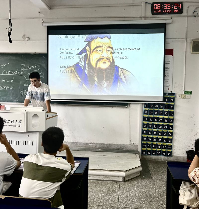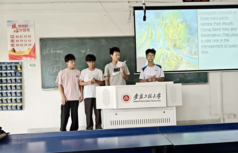 团队深入贯彻外国语学院“四阶双融”口语训练提升计划,在大一年级所有公共外语教学班,开展“课堂5分钟”“用英语讲中国故事”(口语+思政)展示活动;在大二年级教学班,利用课堂前5分钟进行“用英语讲专业”(口语+专业))口语交流;打造“第二课堂”“英语口语‘学’起来”品牌活动,每周一次常态化开展英语角,实施“口语+传统文化”计划,组织学生参加学院品牌活动“‘用英语讲中国故事’口语广场”,开展“用英语讲中华文化”“用英语讲中国诗词”系列主题活动,为学生提供丰富的展示自我、挑战自我的平台。